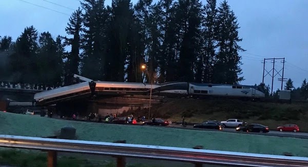 Una formación de la compañía Amtrak, que hacía un recorrido entre Seattle y Portland, tuvo un accidente y un vagón quedó colgando sobre una autopista interestatal.
