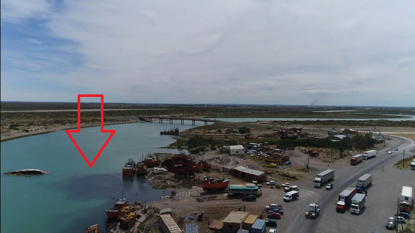 Luego del que el Ministerio de Medio Ambiente de Chubut dispusiera la clausura de la planta pesquera Iberpesca por volcar líquidos contaminantes al río Chubut ahora a tan solo 1000 mts de donde infringió la ley la planta pesquera aparece una misteriosa mancha negra sobre las márgenes del rió en la ubicación en donde todavía se encuentra el barco hundido que la Provincia todavía no retira del lugar por desidia.