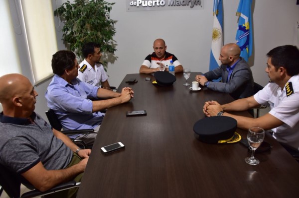 Federico Massoni, secretario de Seguridad de Chubut, y los comisarios Miguel Gómez y Néstor Gómez, jefe y segundo jefe de la Policía del Chubut, vsitaron este miércoles al intendente de Puerto Madryn, Ricardo Sastre, a quien acompañaron el secretario de Gobierno, Dardo Petroli; y el subsecretario de Prevención y Protección Ciudadana del Municipio, Luis Báez.