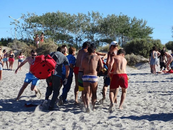 El Domingo a la tarde cerca de las 18 hs, en el sector sur de la playa un vecino diviso a un hombre boca abajo flotando en el agua, inmediatamente el cuerpo de salvavidas llego al hombre y aplicaron reanimación mientras era sacado del agua.