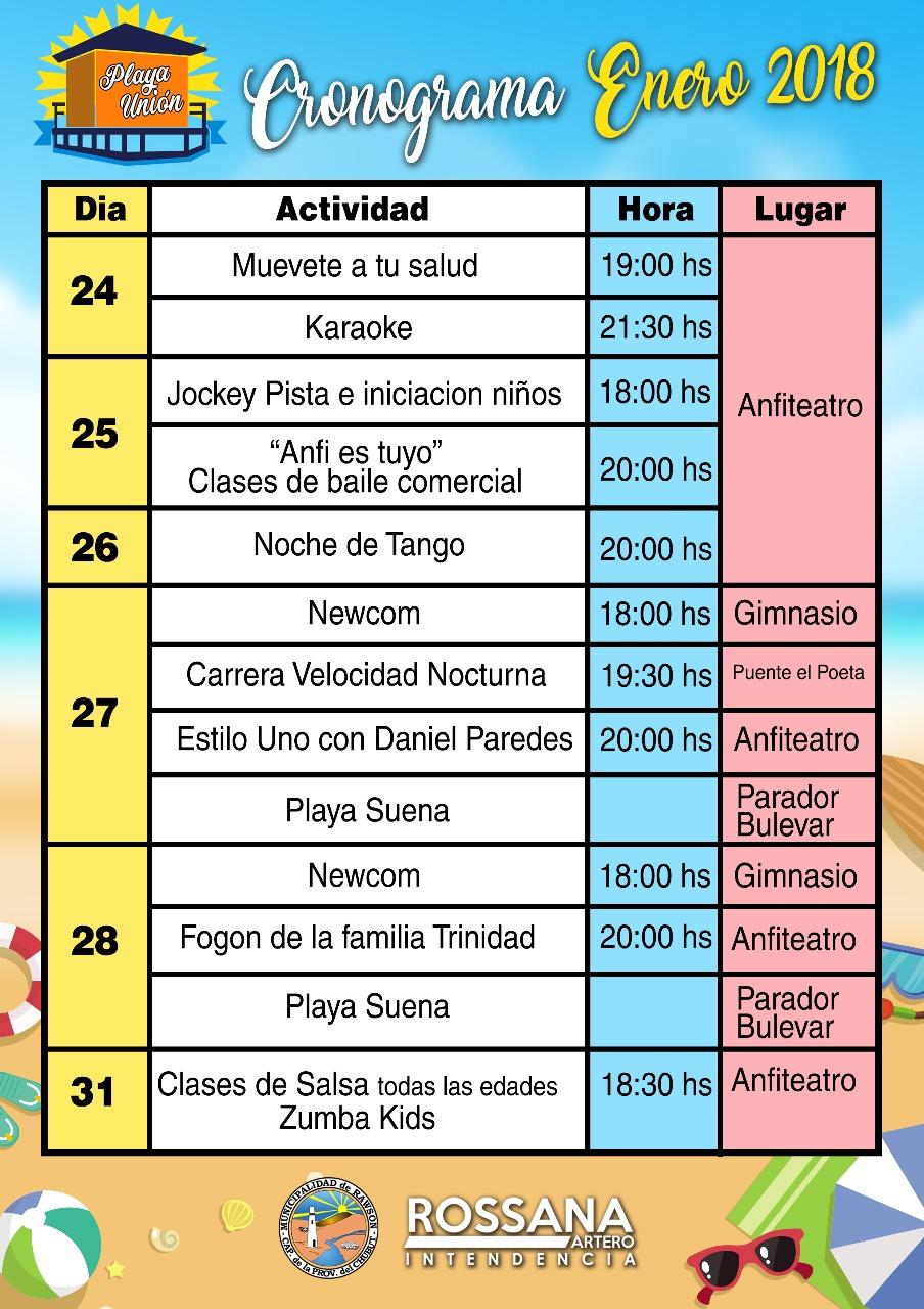 La Municipalidad de Rawson presentó las actividades recreativas, culturales y deportivas que se desarrollarán en Playa Unión. Este miércoles el anfiteatro presentará “Muévete con Salud” a las 19 y a las 21.30 estará el “Karaoke”.