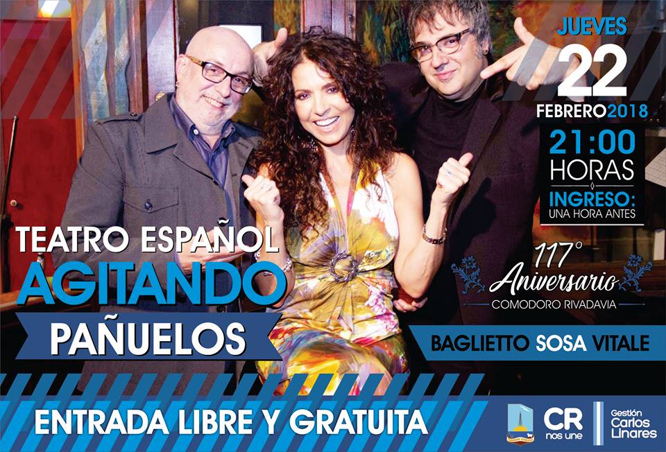 Al respecto, el titular del área de Cultura municipal, Daniel Vleminchx, manifestó que la inspiración de este gran trovador argentino, Juan Carlos Baglieto, del increíble director Lito Vitale, junto a la maravillosa voz de Patricia Sosa, generarán un show espectacular de dos horas de duración que se llama “Agitando Pañuelos”.