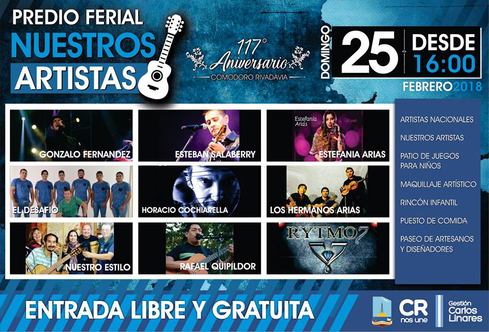 Este domingo, se espera contar con el acompañamiento de todos los comodorenses en un espacio pensado para la alegría familiar en la celebración de un nuevo aniversario de la ciudad con la presentación de Miss Bolivia; Yoel Hernández; Nahuel Pennisi y Peteco Carabajal.