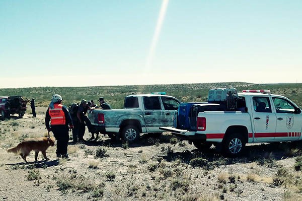 Cuando se descartó la posibilidad de que estuviera en el Dique o en el Río Chubut, esta semana se realizó un recorrido por la ruta 25 descendiendo en sectores con canes hasta llegar a la localidad de Dolavon donde se rastrillo el basural de esa localidad.