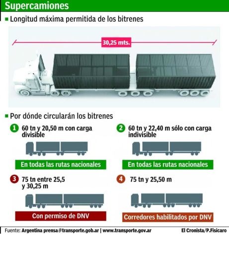 La incorporación de bitrenes en las rutas nacionales (algo que en el vecino país ocurre desde hace varios años), tiene como objetivo “reducir costos logísticos, brindando más productividad y desarrollo para el país”, declaró el ministro de Transporte Guillermo Dietrich. Para la cartera, la reducción de costos podría llegar hasta el 70%, de acuerdo con la carga transportada.