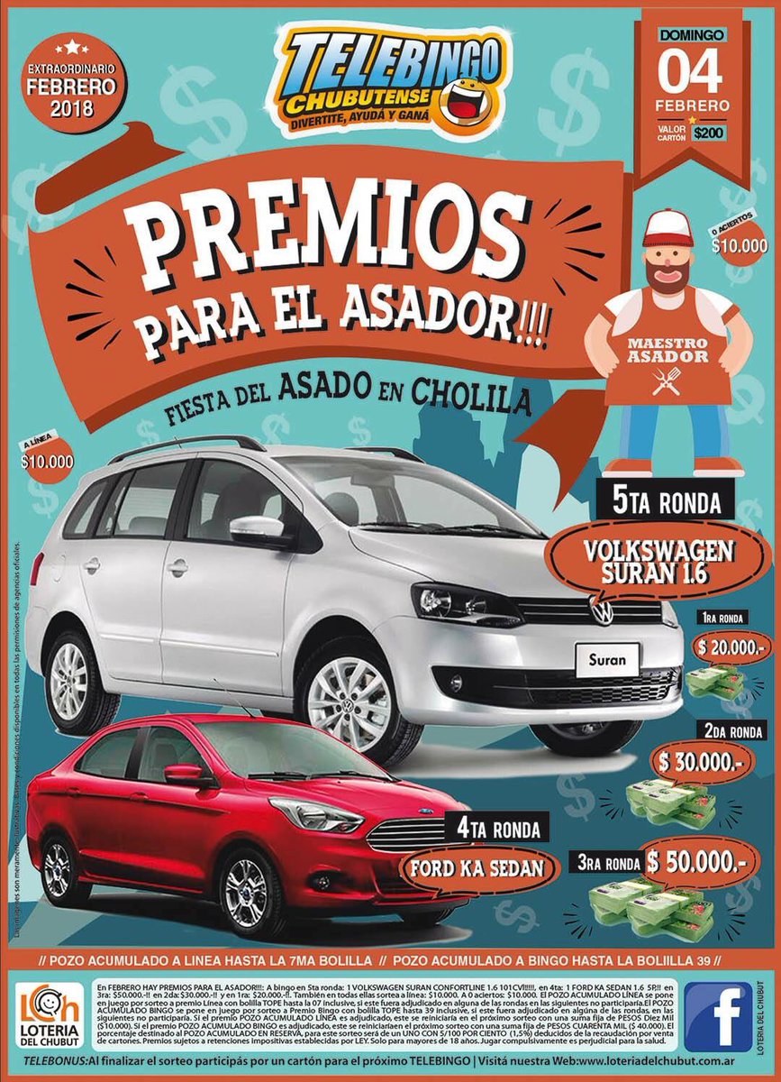 En esta ocasión se pondrá en juego un Volkswagen Suran, un Ford Ka y dinero en efectivo a lo largo de cinco rondas y como es costumbre en cada sorteo del juego de la familia chubutense, el Instituto de Asistencia Social (IAS) Lotería del Chubut, estará entregando bienes de acción social a diez instituciones y organizaciones sociales.