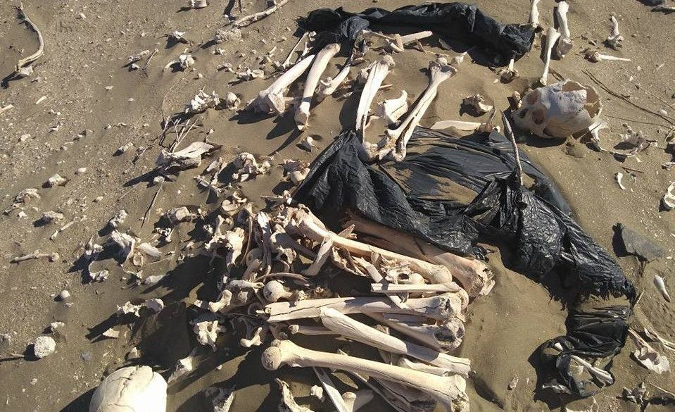 Se trataba de alrededor de 20 esqueletos humanos, desparramados en la arena, algunos de ellos todavía envueltos en bolsas negras que salieron a la superficie por los fuertes vientos de los últimos días.