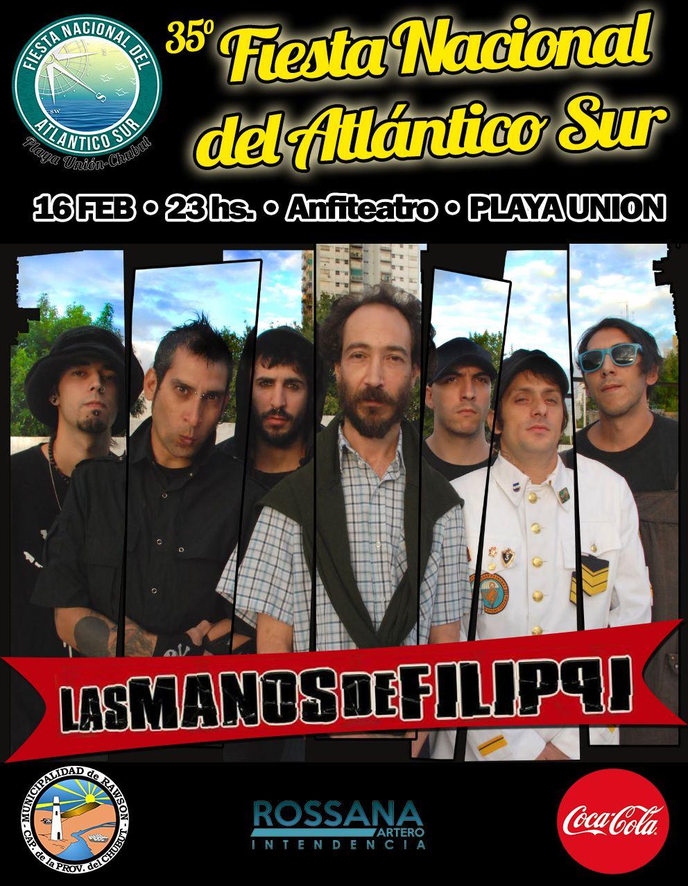 La Municipalidad de Rawson confirmó que las reconocidas bandas “Las Manos de Filippi” y “Repatra” tocarán en la 35° Fiesta Nacional del Atlántico Sur que se desarrollará entre el 16 y el 18 de febrero en el anfiteatro de Playa Unión.