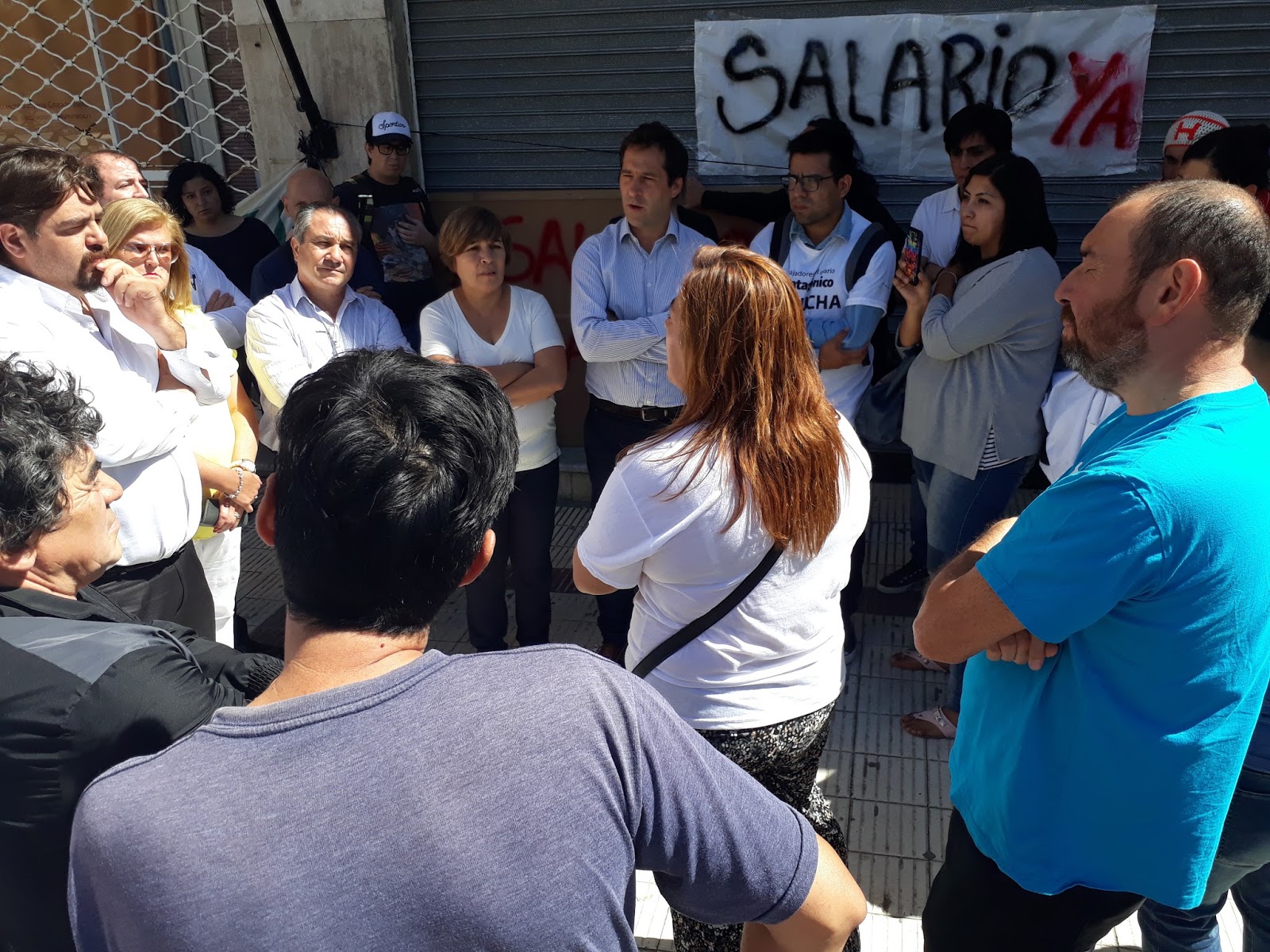 El viceintendente Juan Pablo Luque junto a los concejales bajaron del recinto a dialogar con los trabajadores del diario El Patagónico, quienes se encuentran en alerta desde hace varios meses por la situación de la empresa propietaria, a quienes judicialmente les impiden vender el medio.