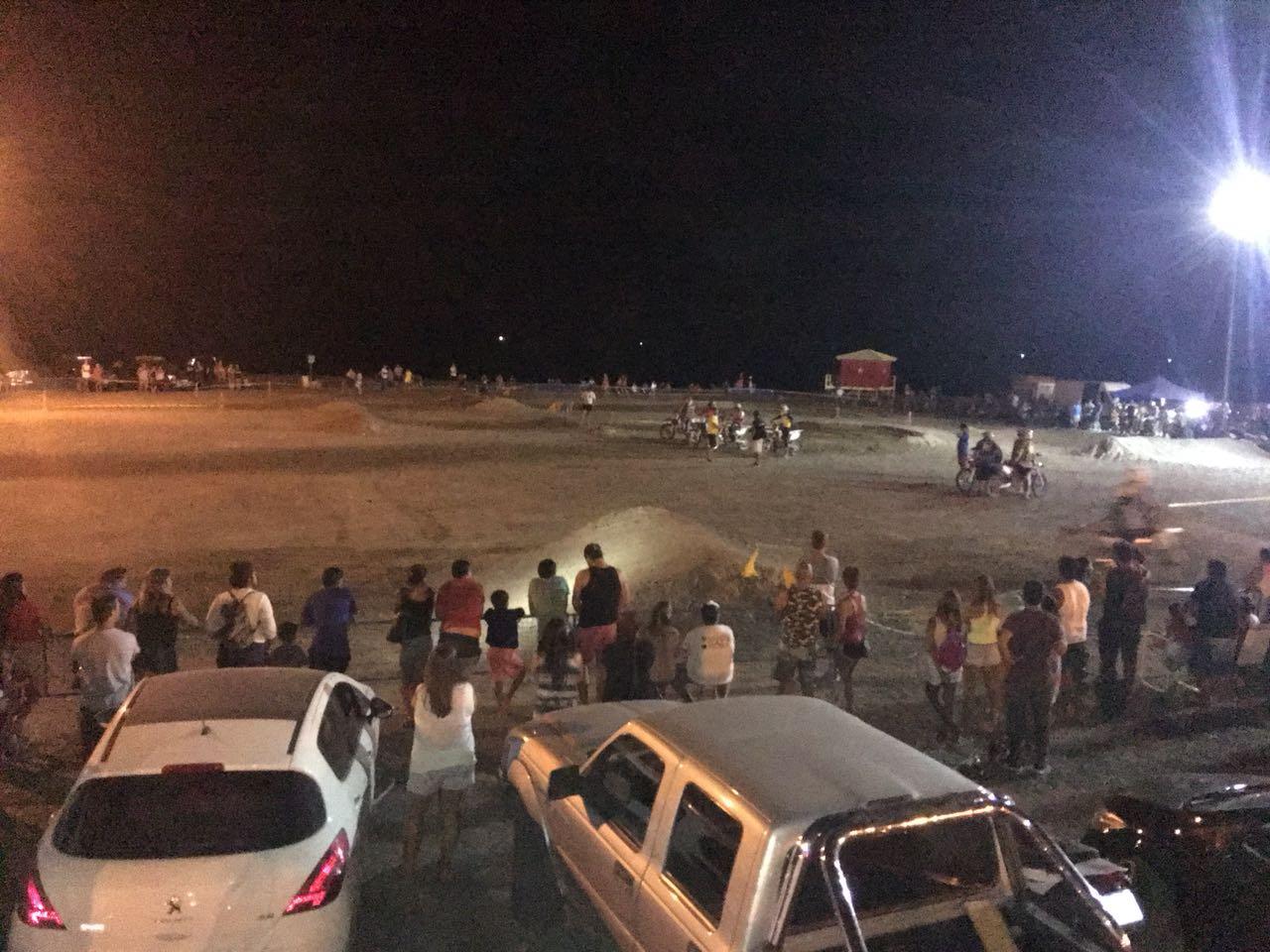 Cientos de personas se congregaron este domingo por la noche en la zona norte de Playa Unión para disfrutar de una exhibición de motocross organizada por la Municipalidad de Rawson en conjunto con la Escuela de Motocross del Valle.