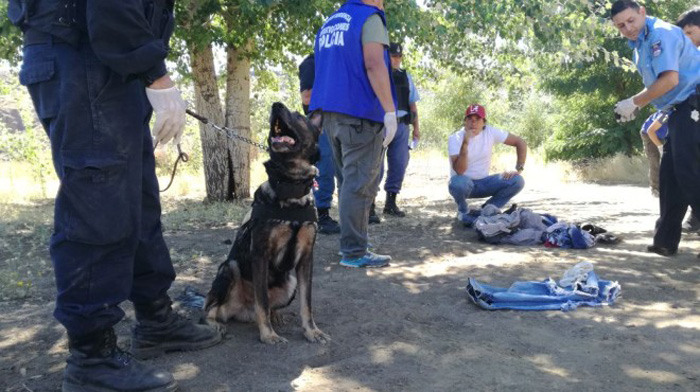 El detenido vive en Varvarco, en donde se produjo un importante allanamiento, y allí los canes marcaron un colchón, una frazada y una toalla.