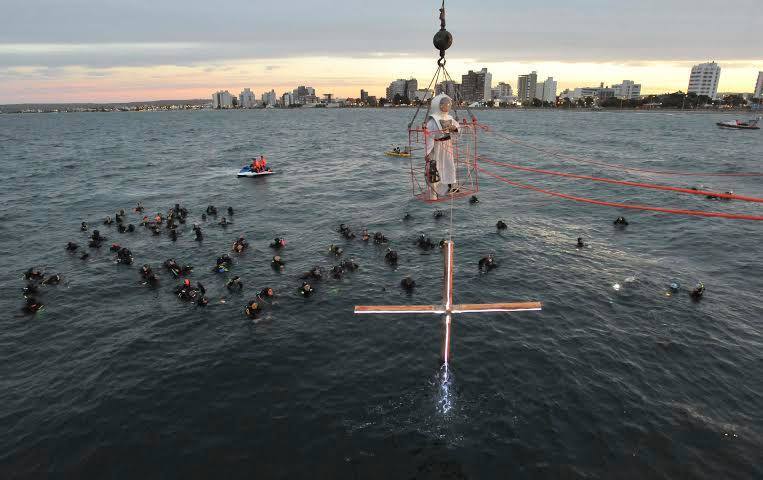 Allí se continuará con la procesión subacuática con el acompañamiento de buzos profesionales de la Asociación de Operadoras de Buceo local, kayakistas instruidos y deportivos de distintas partes del país, que rián cargando una cruz adaptada para la inmersión.