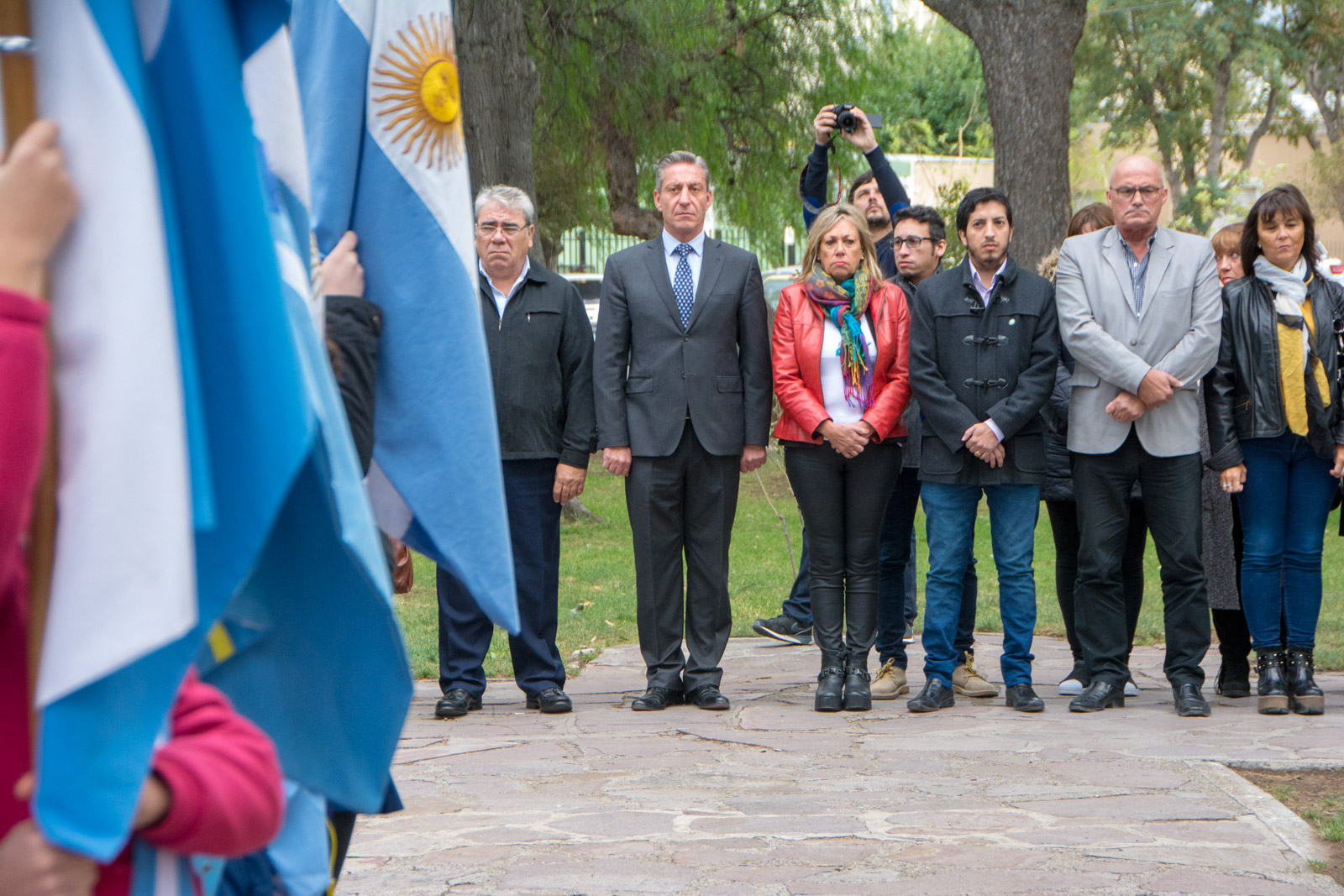 La ceremonia, organizada por la Municipalidad de Rawson, se llevó adelante en la Plaza Guillermo Rawson, frente al palacio municipal, donde se realizó una ofrenda floral a los  monolitos construidos en conmemoración  a los vecinos Cugura y Evans, quienes tienen familiares desaparecidos y asesinados durante la última dictadura militar.