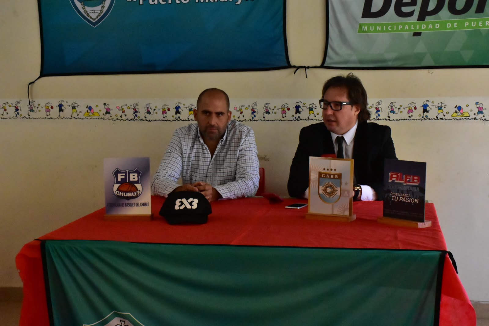 En la conferencia de prensa estuvieron presentes el subsecretario de Deportes de la Comuna, Diego González, y Carlos Sanz, presidente de la Federación de Básquet de Chubut y miembro de la Confederación Argentina de Básquetbol (CABB) .