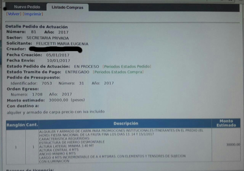 Cristian Eguillor junto a Felicetti beneficiaron a SEPAT SRL con la contratación directa de alquiler y armado de carpa para promocionar al ISSyS Chubut en fiestas regionales, lo cual les habrá generado un retorno en concepto de agradecimiento por tamaño favor, como por ejemplo una licencia psiquiátrica de $ 75.000 por mes sin ir a trabajar.
