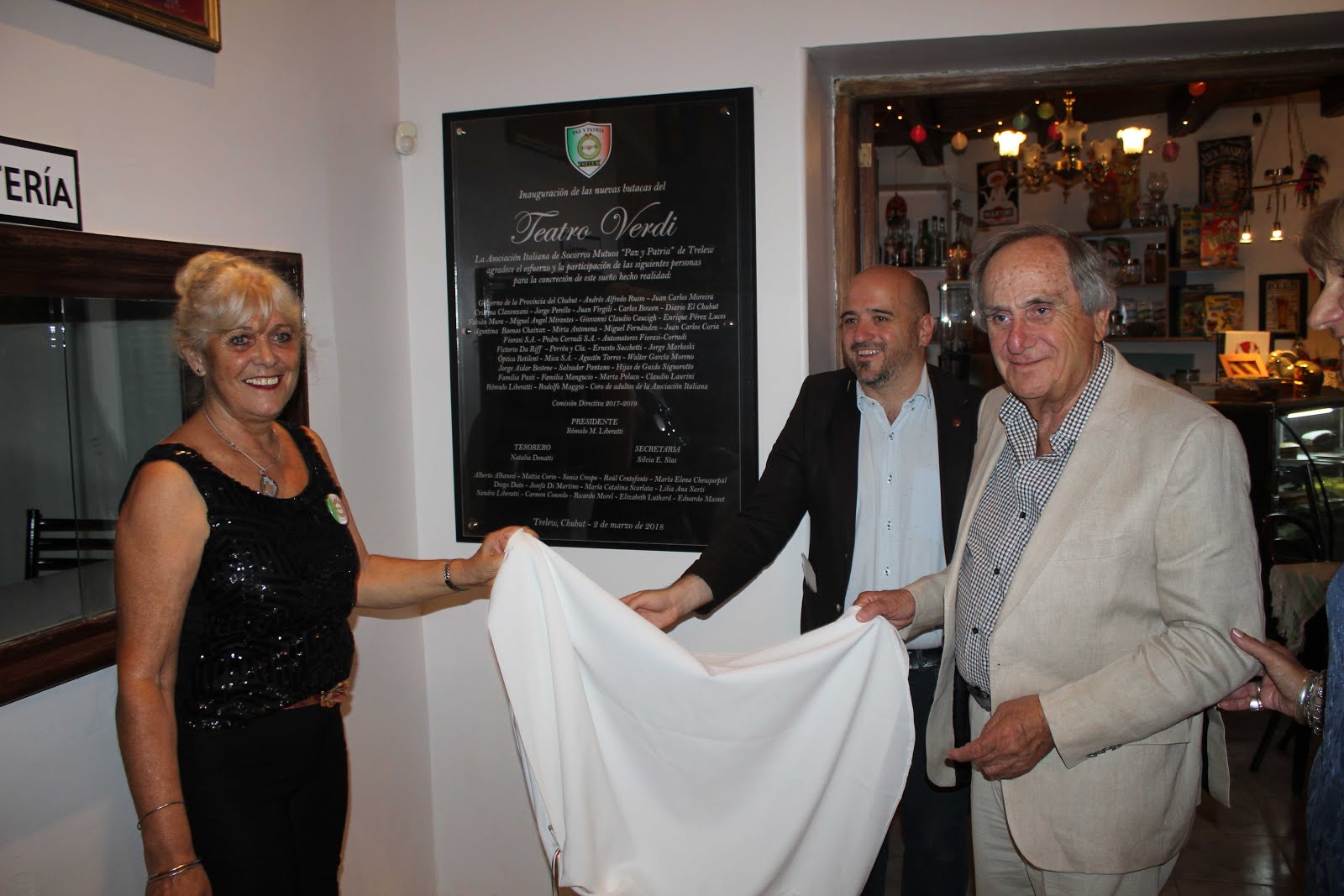 Durante la gala, ante la presencia de las autoridades, además del socio y colaborador Andrés Russo y la secretaria de la Institución, Silvia Sías, se llevó adelante el descubrimiento de una placa conmemorativa en el hall del Teatro. La misma lleva los nombres de todas aquellas personas que, gracias a su aporte, hicieron posible la incorporación de 228 butacas y que, sumadas a las reformas realizadas desde el 2006, han devuelto a la comunidad este espacio cultural histórico.