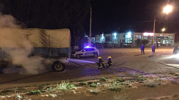 En ese lugar había un acoplado estacionado, un testigo vio que un auto alta gama bajó de la ruta y estacionó junto a este y en instantes aparecieron las llamas en uno de los neumáticos.