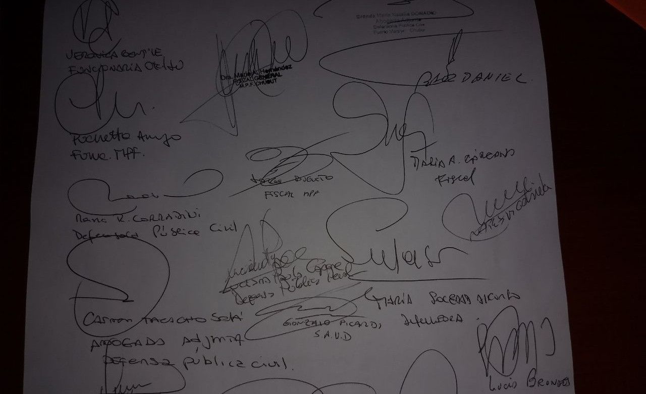 La nota lleva la firma de jueces, fiscales y miembros de la Defensa Pública de Puerto Madryn.
