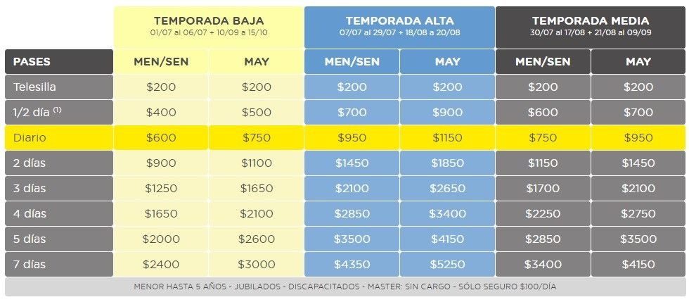 Para adquirir tus pases, podés dirigirte a las agencias de viajes locales, a la boletería ubicada en la base del cerro o la oficina de La Hoya, ubicada en Rivadavia 1360.