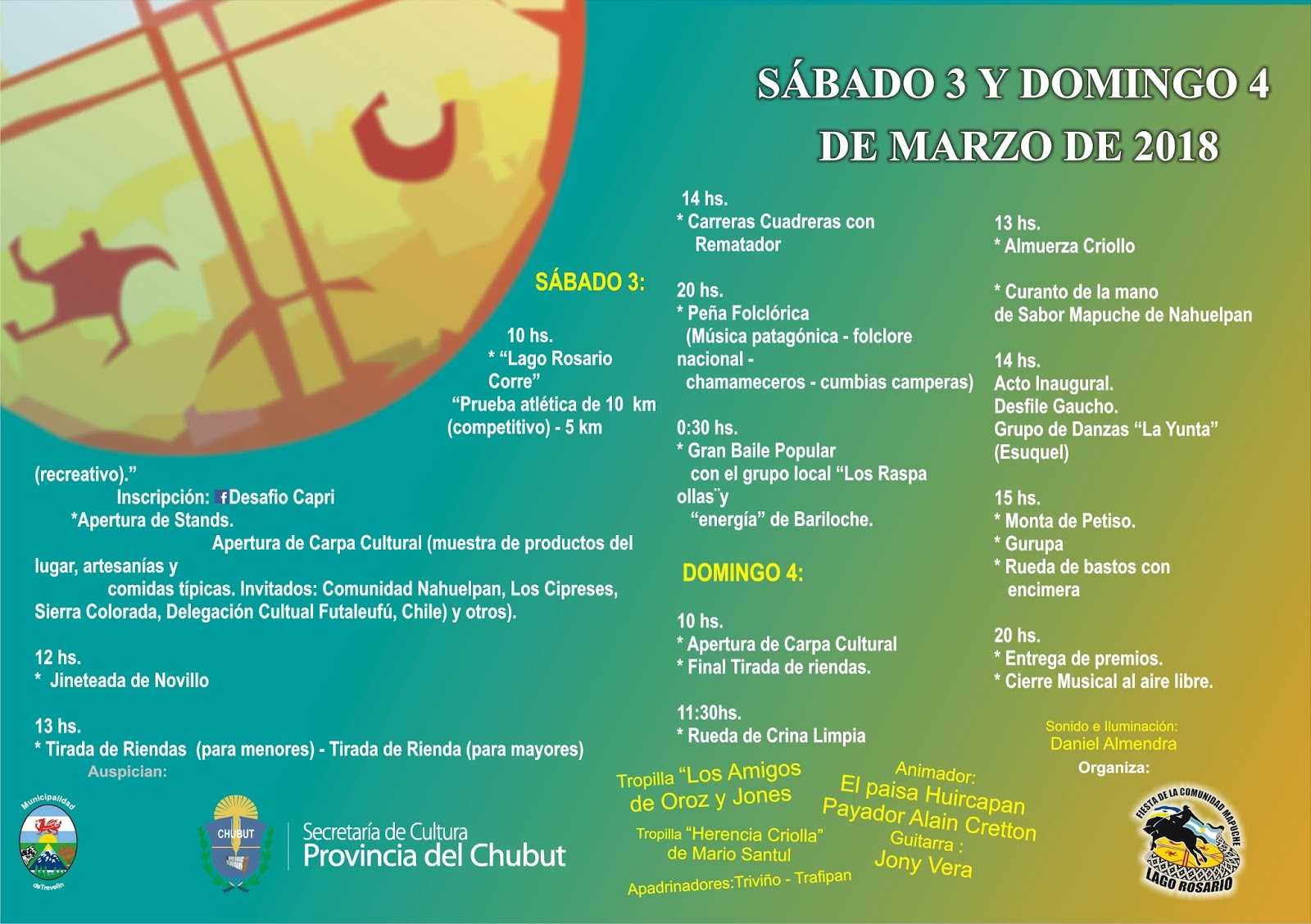 La comunidad del Lago Rosario, perteneciente al municipio de Trevelin, celebrará una nueva edición de la Fiesta de la Comunidad Mapuche, los días sábado 3 y domingo 4 de marzo.