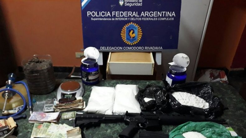 También se incautó una importante suma de dinero, celulares involucrados en la causa, dos vehículos particulares, una réplica de Un Fusil de asalto, una pistola calibre 45 con la inscripción “COLT”, sin numeración visible, una balanza de precisión y demás elementos de corte y fraccionamiento de sustancias.