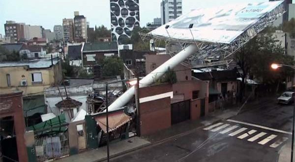 Asimismo, un cartel publicitario de acero de 8 toneladas cayó en la localidad de Sáenz Peña, también en Tres de Febrero, y destrozó cuatro casas linderas en el cruce de las avenidas General Paz y Mosconi.