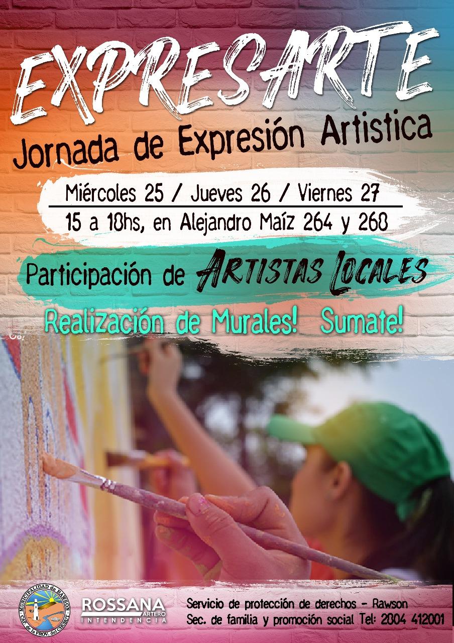 La Municipalidad de Rawson, a través del Servicio de Protección de Derechos, dará inicio este miércoles a las jornadas de Intervención Artística para jóvenes y adolescentes que se desarrollará, de 15.00 a 18.00, en el frente de las oficinas del Servicio ubicadas en la calle Alejandro Maíz 264.