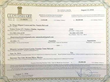 En algunos medios digitales durante la tarde de ayer, salieron con la foto de un certificado de Tiempo Compartido, cuya titularidad es de Diego Correa y Natalia Mc Leod, bajo el nombre de cuenta Off Shore.