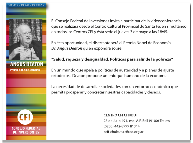 El ciclo dará inicio el próximo jueves 3 de mayo a las 18:45, bajo el título «Salud, riqueza y desigualdad: Políticas para salir de la pobreza», cuyo disertante será el Premio Nobel de Economía, Angus Deaton.