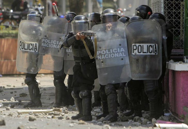 Cientos de manifestantes, entre universitarios, jubilados y vecinos se enfrentaron el jueves a fuerzas antimotines en las calles de la capital y otras ciudades en repudio a una reforma al sistema de pensiones. Los manifestantes rechazan aumentos en las contribuciones al sistema de pensiones decretados por el gobierno del presidente Ortega. Cientos de antimotines con escudos, escopetas y gases lacrimógenos repelieron a los manifestantes que respondían con piedras, mientras numerosos transeúntes quedaron atrapados en los enfrentamientos.