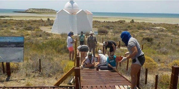En esta oportunidad se está trabajando sobre un sendero elevado en la unidad operativa de Caleta Valdés como uno de los puntos más visitados dentro del Patrimonio Natural de la Humanidad.