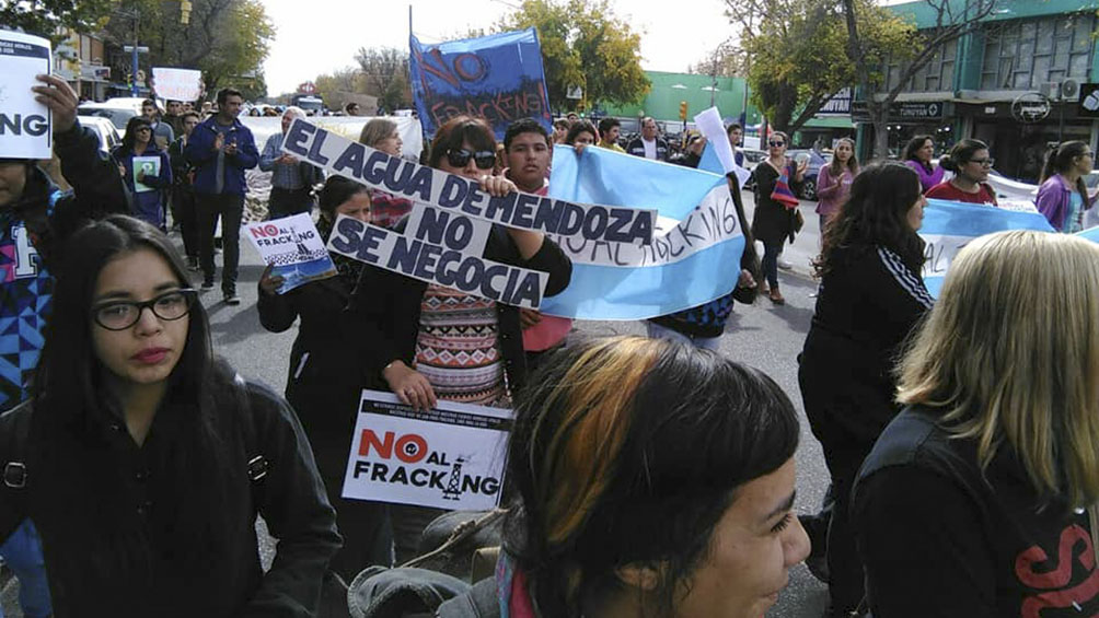 Un grupo de vecinos de esa localidad de Valle de Uco, junto a alumnos del establecimiento de educación terciaria Rosario Vera Peñaloza, cortó la vía nacional durante varias horas para bloquear el paso de un camión, que según los manifestantes llevaba en su carga material para efectuar las tareas de estimulación hidráulica, conocidas como «fracking», y tenía como destino el Puesto Rojas, en Malargüe.