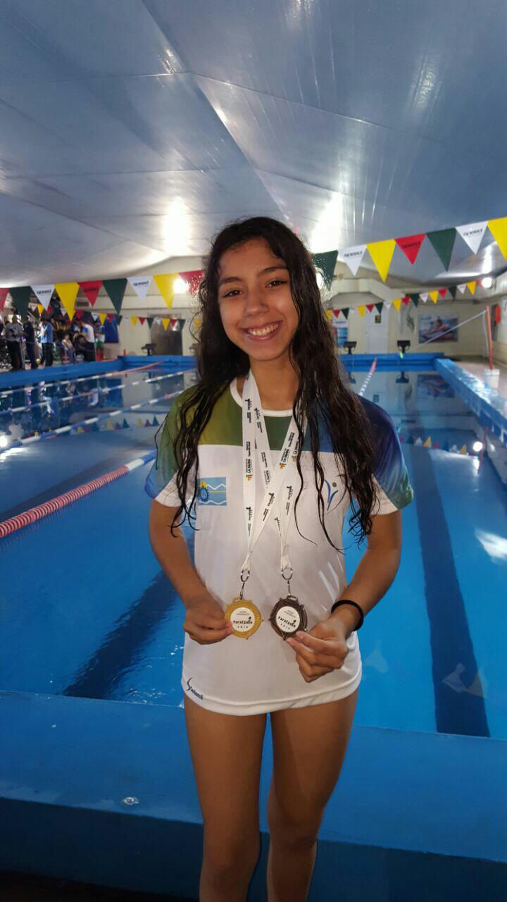 Pero no fue la única presea que obtuvo, dado que en la prueba de 25 metros Libres llegó en el tercer puesto y se hizo de la presea de bronce, aportando dos medallas para el equipo de la provincia.