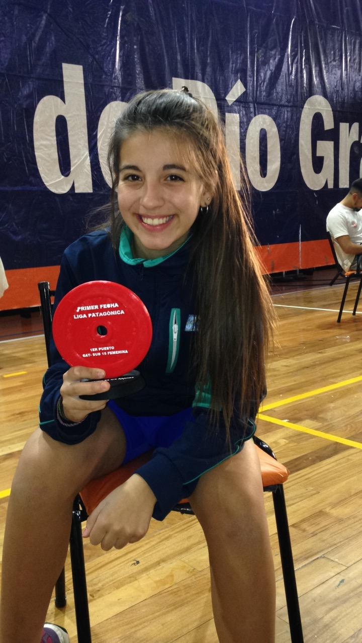 La atleta capitalina Agustina Canteros obtuvo el primer puesto de la categoría sub 15 en el Circuito Patagónico de Levantamiento Olímpico de Pesas, competencia que tuvo lugar el pasado sábado 7 en la ciudad de Río Grande, Tierra del Fuego. Además la joven alcanzó su mejor marca con 33 kilos en arranque y 38 kilos en envión.