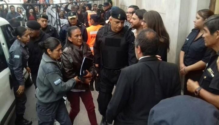 La dirigente social, quien cumple con su detención en su domicilio del dique La Ciénaga, llegó acompañada por su abogado Luis Paz.