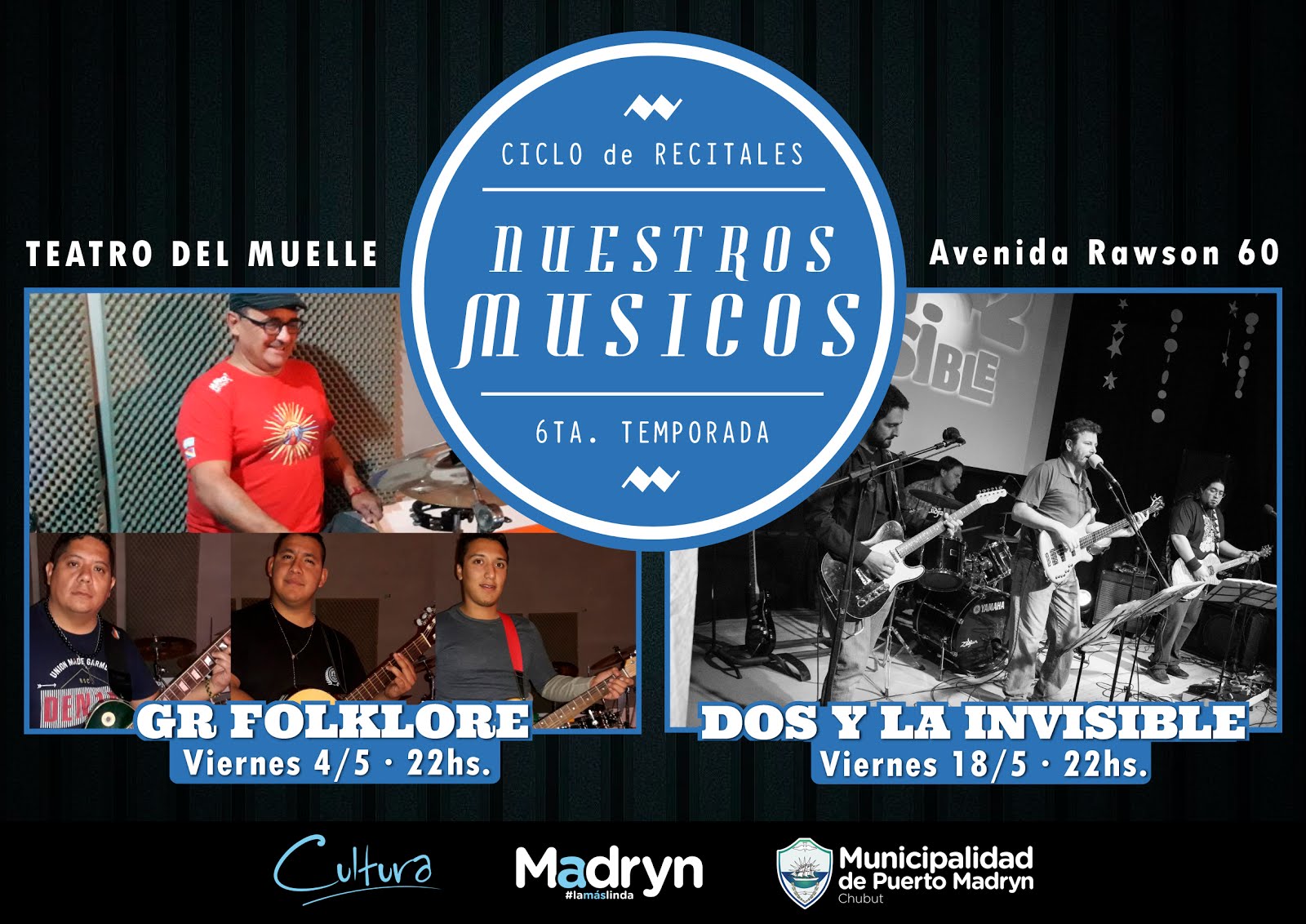Desde hace seis años el área de Cultura del Municipio organiza el Ciclo “Nuestros Músicos el cual reúne a artistas madrynenses de diversos géneros musicales. En esta oportunidad comenzará el viernes 4 de mayo con la presentación de GR Folklore.