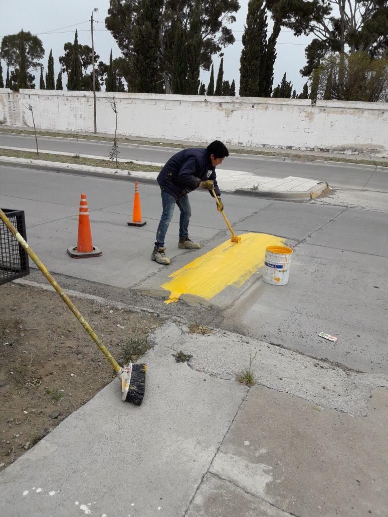 El plan, que es ejecutado en conjunto por la Dirección de Tránsito y la Secretaría de Obras y Servicios Públicos municipal, contempla la realización de trabajos de pintura en cordones cuneta de calles, bulevares, rotondas, escuelas y lomos de burro de la ciudad.