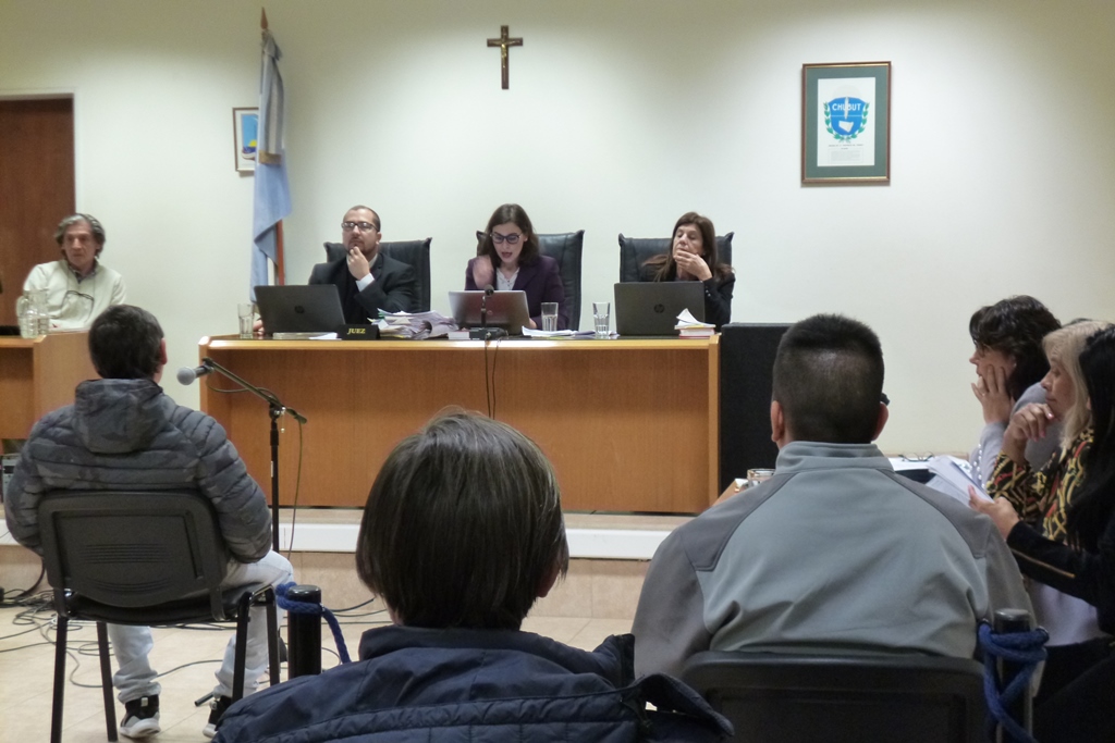 Presidió el acto Daniela Arcuri, quién junto a Raquel Tassello y Martín Cosmaro integraron el tribunal de debate; por el Ministerio Público Fiscal se hizo presente Camila Banfi, fiscal general. La defensa de Matías Nieves fue ejercida por Elizabeth Yapura; en tanto que la del menor R. P. N. por Viviana Barillari, defensora pública y Andrea Mac Garva, asesora de menores.