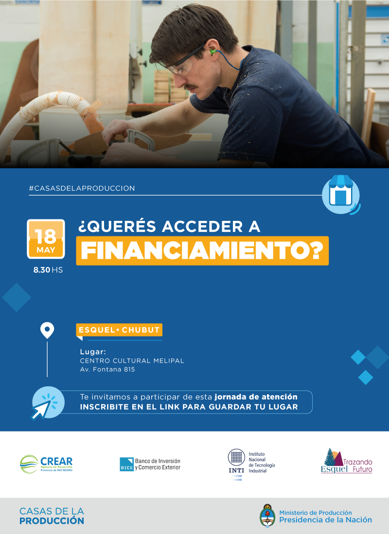 La Secretaría de Producción y Empleo de la Municipalidad de Esquel invita a representantes de empresas PyMEs de la región (gerentes, directores ejecutivos y técnicos) a participar de un encuentro donde, especialistas técnicos presentarán y brindarán asesoramiento sobre las distintas herramientas que el Ministerio de Producción de la Nación ofrece para el sector.