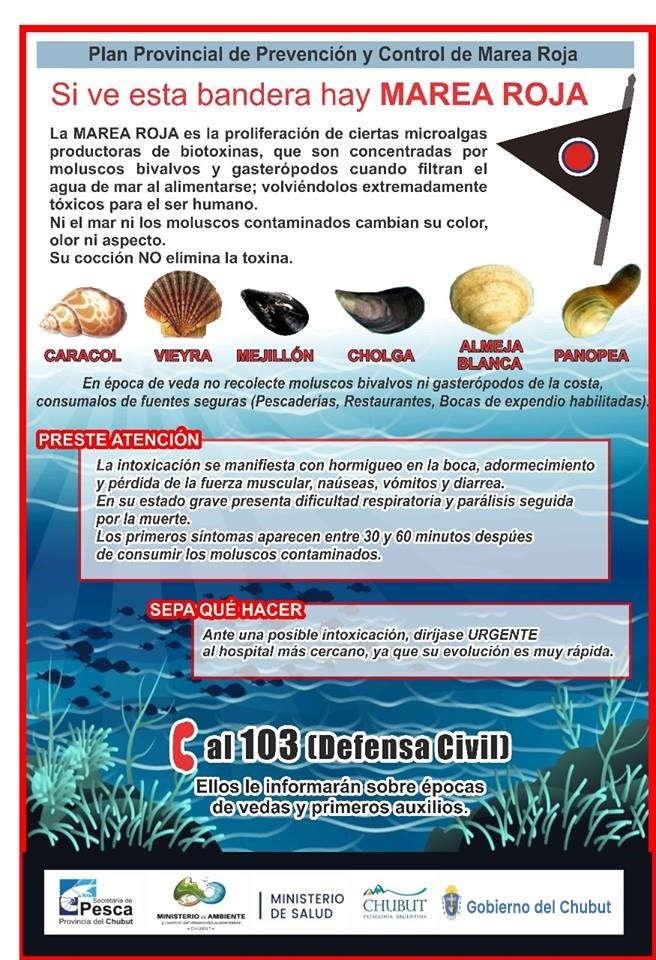 Ante una posible intoxicación, dirigirse urgente al hospital más cercano o llamar al 103 (Defensa Civil) quienes brindarán información sobre época de vedas y primeros auxilios.