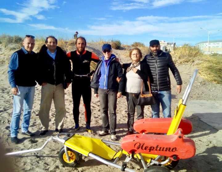 Durante el encuentro el equipo de Nación hizo entrega al Municipio de una nueva silla de ruedas anfibia, la cual será utilizada desde el área de Deportes de la Comuna. Se trata de un elemento fundamental para desplazar a personas con discapacidad y personas mayores en cada situación desde la arena hasta el agua. Está equipada con ruedas innovadoras desarrolladas para hacer más fácil el desplazamiento sobre cualquier tipo de superficie y permite entrar en el agua sentado cómodamente.