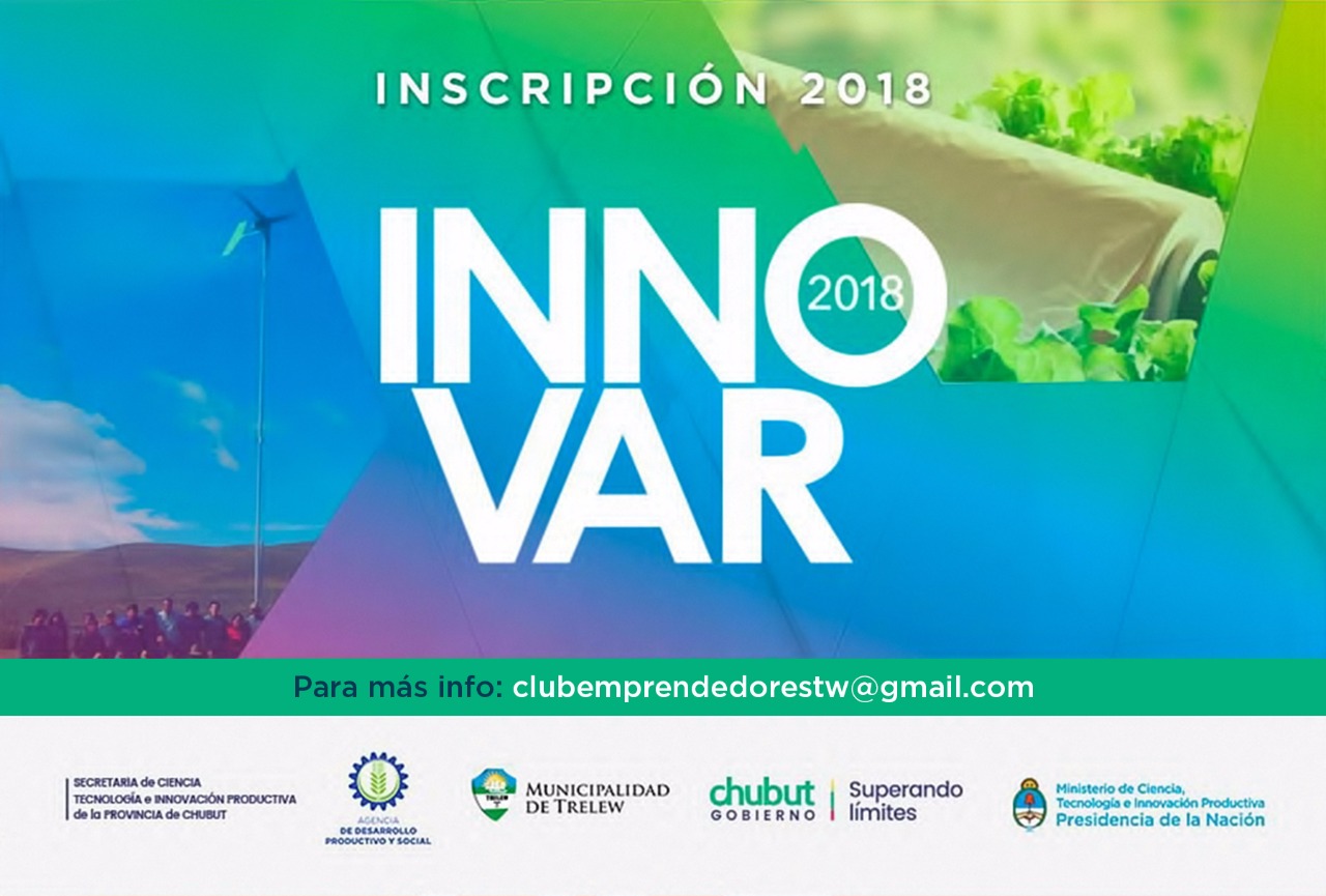 El próximo lunes 7 de mayo se realizará en instalaciones del Club de Emprendedores de Trelew el lanzamiento del “Concurso Nacional INNOVAR 2018”. Con la presencia de autoridades provinciales y municipales el proyecto se presentará en Fontana 355 a partir de las 11 horas. Mediante este proyecto se busca impulsar las invenciones de impacto social y comercial y emprendimientos de base tecnológica.