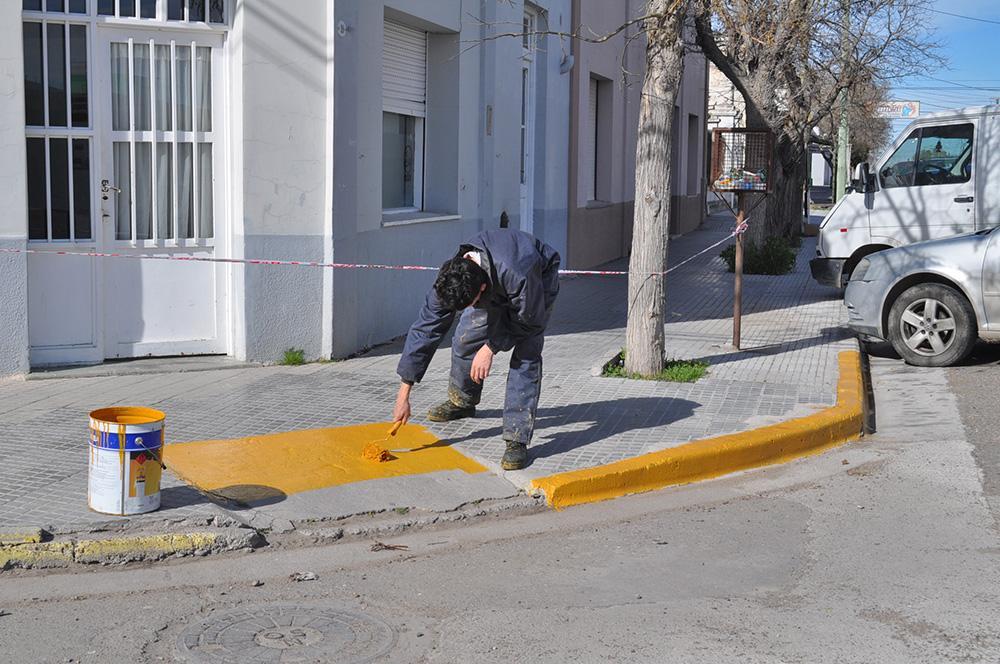 La Municipalidad de Rawson pintará cordones cuneta, rampas para discapacitados y lomos de burro en distintos puntos de la ciudad. Las tareas comenzarán cuando mejores las condiciones climáticas en bulevares, rotondas y salidas de escuelas de Rawson y Playa Unión.