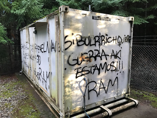 En el lugar dejaron pintadas adjudicándose el hecho, por la libertad de Facundo Jones Huala y de “guerra” contra la ministra de Seguridad de la Nación Patricia Bullrich.