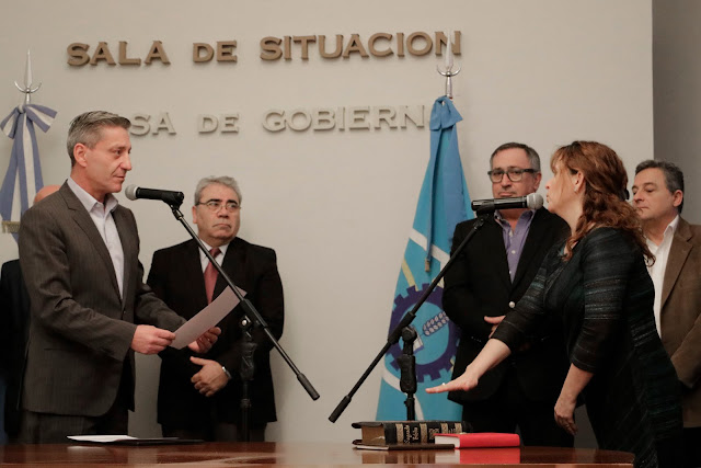El gobernador del Chubut, Mariano Arcioni, presidió, este lunes en Sala de Situación de Casa de Gobierno, el acto de asunción de Lucrecia Pourte como nueva secretaria de Coordinación de Gabinete y Gerardo Gaitán como nuevo secretario Trabajo de la provincia.