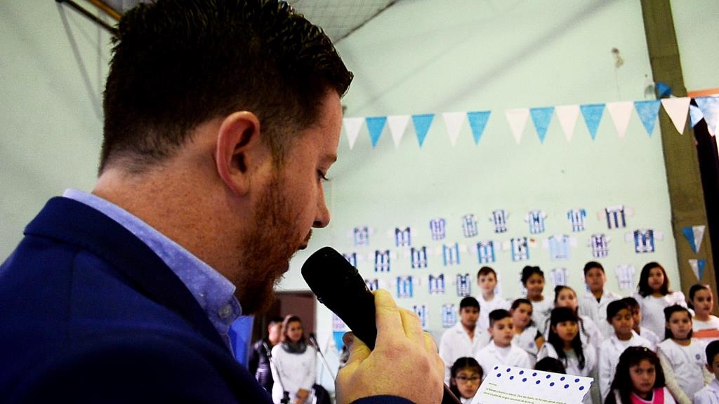 Junto a los más de 70 alumnos de cuarto grado del establecimiento escolar valletano, sus docentes y directivos, el jefe comunal fue el encargado de tomar la Promesa a la Bandera con un emotivo mensaje que culminó con el “Si prometo” de los emocionados niños y niñas dolavenses.