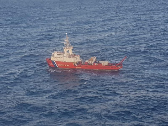 Personal especializado de la Prefectura Naval Argentina, a bordo del guardacostas SB-15 «Tango», se encuentran trabajando en la zona de búsqueda del pesquero desaparecido.