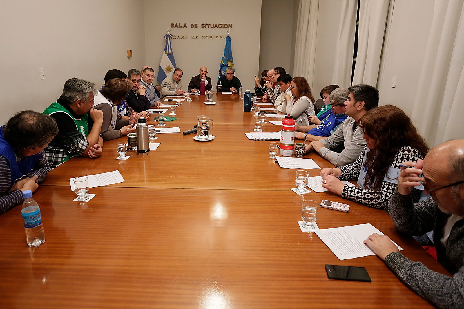 Se trató de un encuentro que arrancó pasadas las 18.30 horas, en la Sala de Situación de Casa de Gobierno en Rawson, y al que asistieron los ministros de Coordinación de Gabinete, Marcial Paz; de Gobierno, Federico Massoni; de Economía, Alejandro Garzonio; de Salud, Adrián Pizzi; de Educación, Graciela Cigudosa; el subsecretario de Coordinación Financiera, Luis Tarrío; la subsecretaria de Gobierno, Lucrecia Pourte; el subsecretario de Empleo y Capacitación, Juan Carlos Arzan; entre otros.