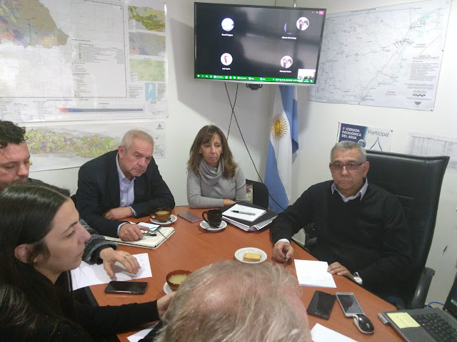 Integrantes de la Comisión de la Meseta Intermedia del Chubut participaron de una conferencia con expertos del Banco Mundial, de la FAO e ingenieros de la Secretaría de Recursos Hídricos de Nación en pos de ultimar tramos finales para la formulación del proyecto que busca poner bajo riego cerca de 35.000 hectáreas entre Trelew y Puerto Madryn, a través de un sistema de bombeo que eleve el agua del río para alcanzar nuevas tierras productivas.