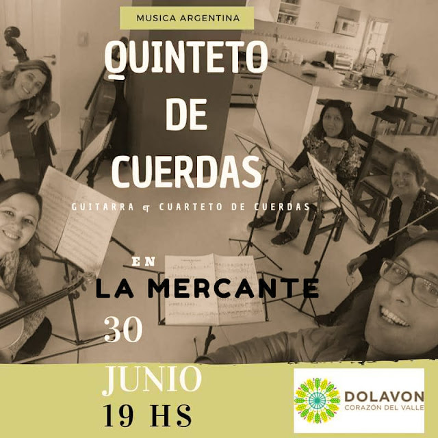 Desde la dirección de Cultura de la municipalidad de Dolavon invitan a los vecinos del Valle Inferior del Río Chubut, el sábado 30 de junio, a las 19 horas, a la segunda presentación del Quinteto de Cuerdas en el edificio de La Mercante, ubicado en la intersección de las calles 28 de Julio y Julio A. Roca.